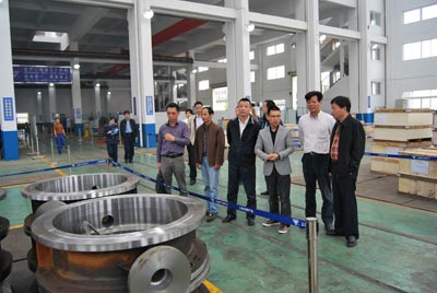 上图为工商局领导在杨总的陪同下参观我厂生产车间。对我厂的生产状况进行实地考察。考察时工商局领导纷纷表示:“上海沪工阀门厂规模已上全新台阶,二期阀门技改项目很成功,全新生产基地投入使用必展的很好。回去之后一定会仔细研究组建材料尽早的给出答复。”