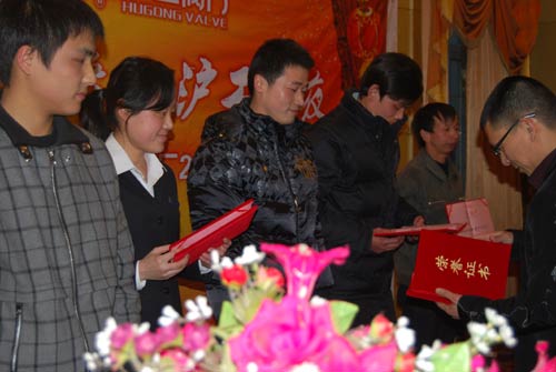 上图为杨总为荣获“先进集体”的油漆车间颁奖