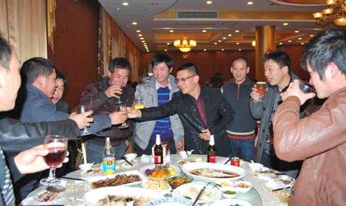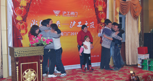 上图为晚会上杨总向员工敬酒为大家祝福,并组织员工参加“找朋友”游戏,外贸部袁艳女士为大家带来一首《常回家看看》。