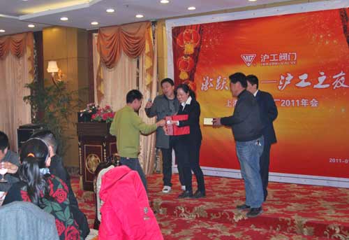 歌曲之后继续抽奖环节,上图为柯主任在为员工抽奖并颁奖!